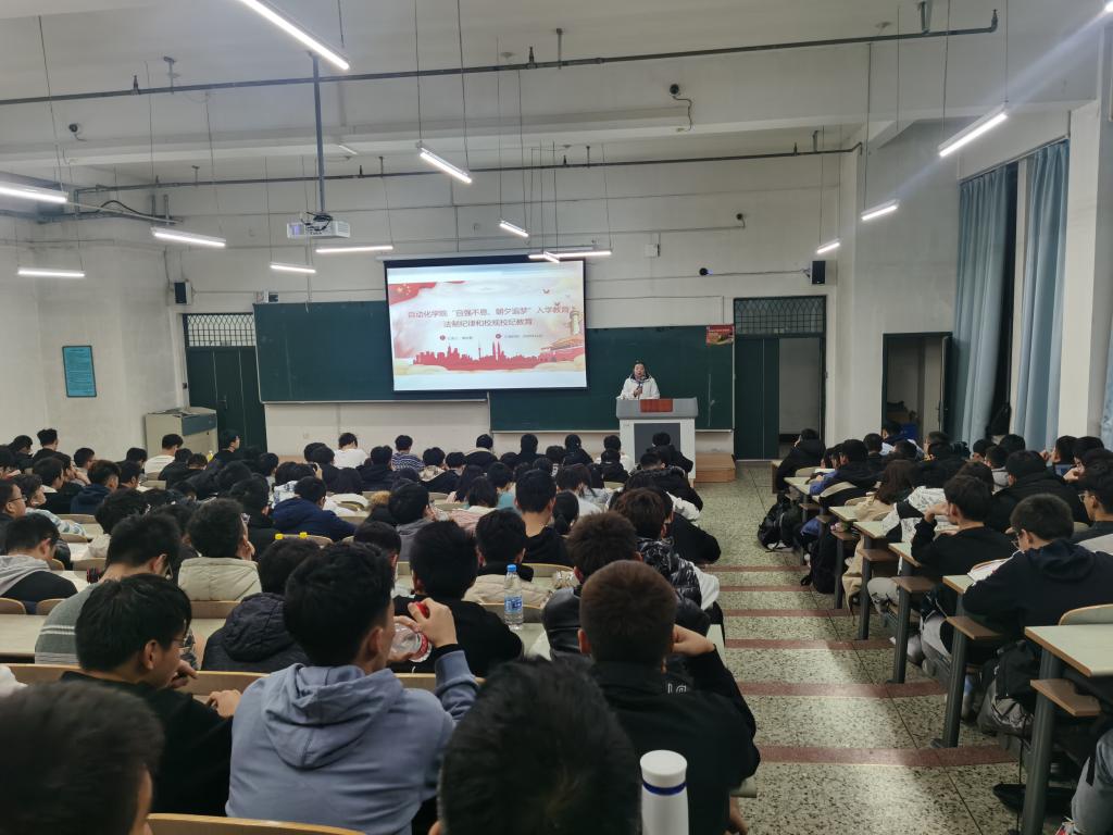 11月5日,自动化学院辅导员黄林萱于新主楼B514和A102开展法制纪律和校规校纪教育。黄老师着重解读了77779193永利官网相关校规校纪。让同学们对学籍管理、校园秩序、课外活动、学生奖励、违纪处分等规定有了充分的了解。并用实际案例,为同学们详细解读了77779193永利官网学生考试违规(违纪、作弊)行为认定及处理办法,并要求2020级新生们期末考试要认真备考、诚信考试,做到零违纪。