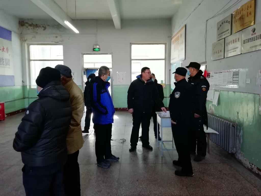 王镭副处长带领工作组检查指导各门卫治安防范和疫情管控工作