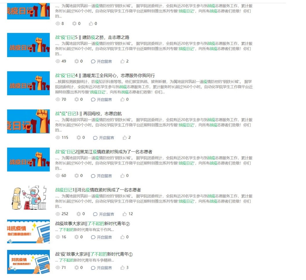 近期各地散发的疫情牵动着每个人的心,自动化学院按照永利官网疫情防控工作的相关要求,谋实举措,压实责任。建立“横向到边,纵向到底”的寒假学生疫情防控工作机制,加强对学生的思想教育和价值引领。充分利用学生管理数字化平台和网络宣传平台,精准掌握学生情况,开展教育宣传活动,实现教育、管理、服务“三位一体”,为学生构筑疫情防控的“钢铁长城”。