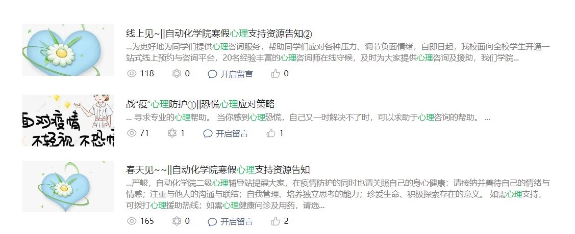 《自动化学院寒假心理支持资源告知》及《战疫心理》专栏