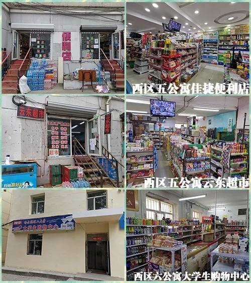 西区:五公寓赛特超市、五公寓佳捷便利店、五公寓智凯仓买(原云东仓买)、六公寓大学生购物中心