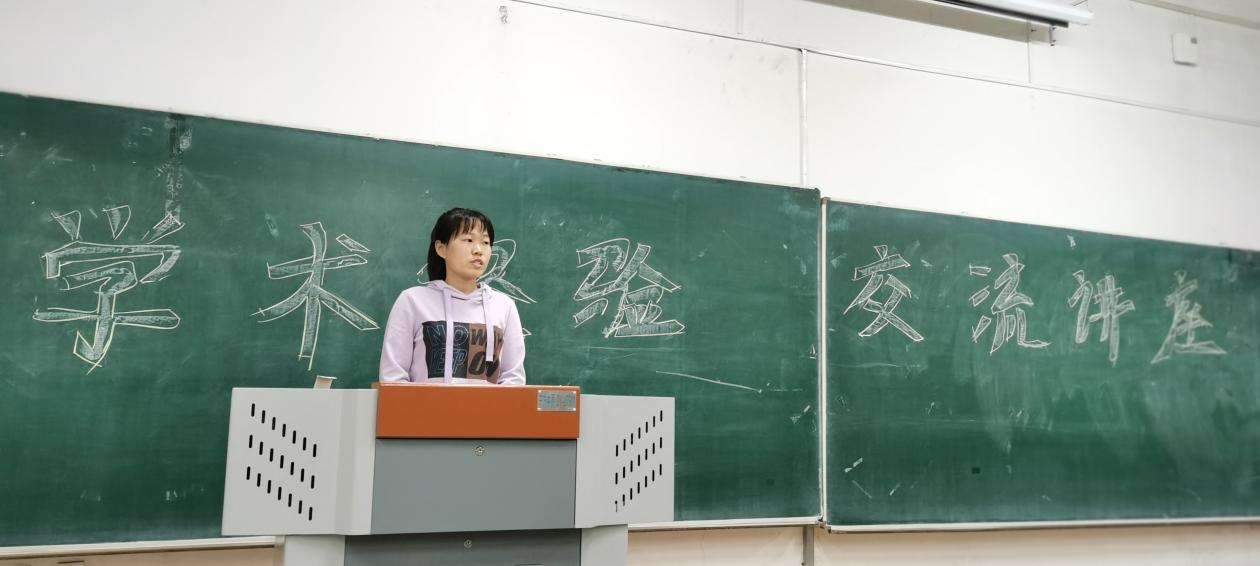 其次,2018级数学专业研究生关馨郁在学业方面讲述了如何高效率的进行知识的学习、积累,在论文发表方面建议同学们要在日常学习中多看高水准文章,并根据自己的学习节奏由“简”到“精”,在比赛队伍的组建和队伍的分工合作方面也给出了自己独特的见解。