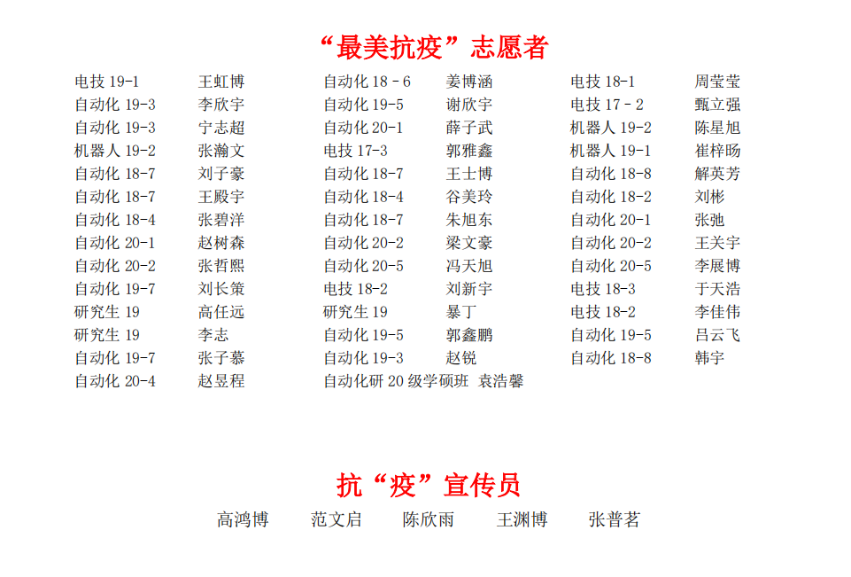 本次表彰大会不仅激励了此次参与战“疫”的志愿者和宣传员们,还鼓舞着更多学生参与到防疫抗战活动中来,践行和发扬伟大的“抗疫”精神,展现“博思海纳,笃学创新”的自动化学院风尚。
