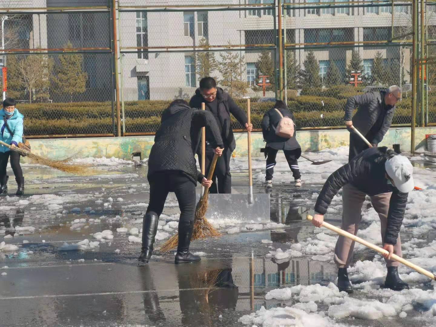 万物复苏,春意盎然,漫长而愉快的寒假过去了,新学期开始了!体育教学部为新学期线下课的顺利开展做了大量的准备工作,组织教师清扫积雪,给球场换上新的球网,检查维修校园内健身器材,整理库存为新学期的课程准备体育器材,派专人为器材进行消毒。开学初的一场大雪,把刚刚清除积雪的运动场重新覆盖,为了给同学们创造一个良好的休闲运动场所,体育部以雪为令,雪停后及时投入人力再次将体育场的积雪清理干净。