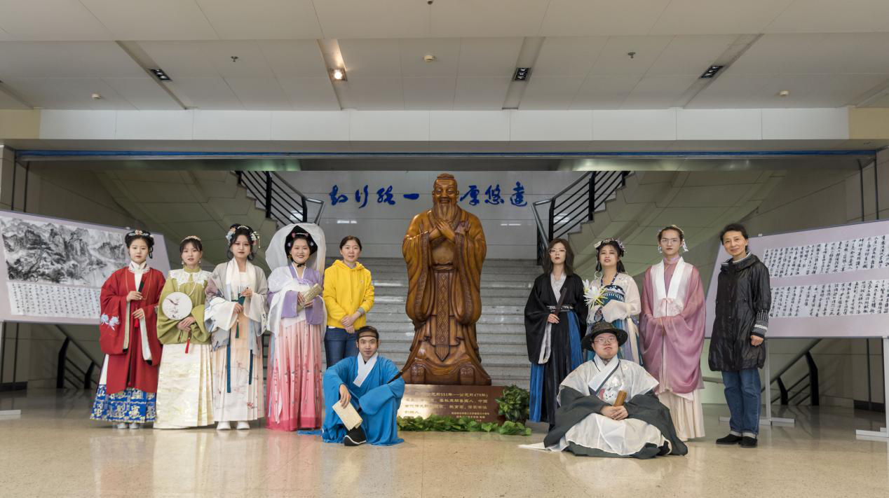 上午九点四十分,由图书馆读者服务部牵头,联合永利官网“明德汉服社”在图书馆南区分馆三楼大厅进行了一场隆重的“汉服走秀”表演。表演者身着承载着汉族传统文化的服饰,为世界读书日添加了一笔华夏汉服之美。