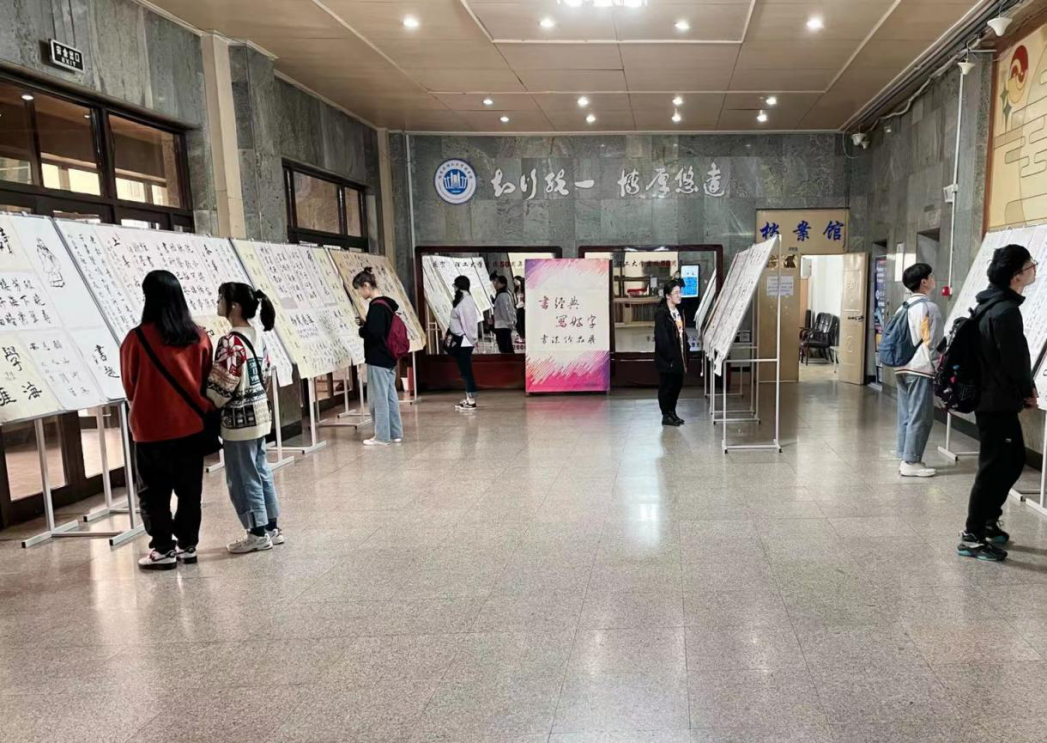 由图书馆书法协会牵头举办的“书经典、写好字”学生书法作品展在图书馆西区分馆二楼开展,作品其内容涵盖了经典名著、诗词、散文中的文章或节选,红色经典等,书法展弘扬了中华民族优秀传统文化,传承红色精神;以书法承载书籍,用书籍引导书法,让华夏绵延数千载的古老艺术形式绽放出属于新时代的独特光彩。