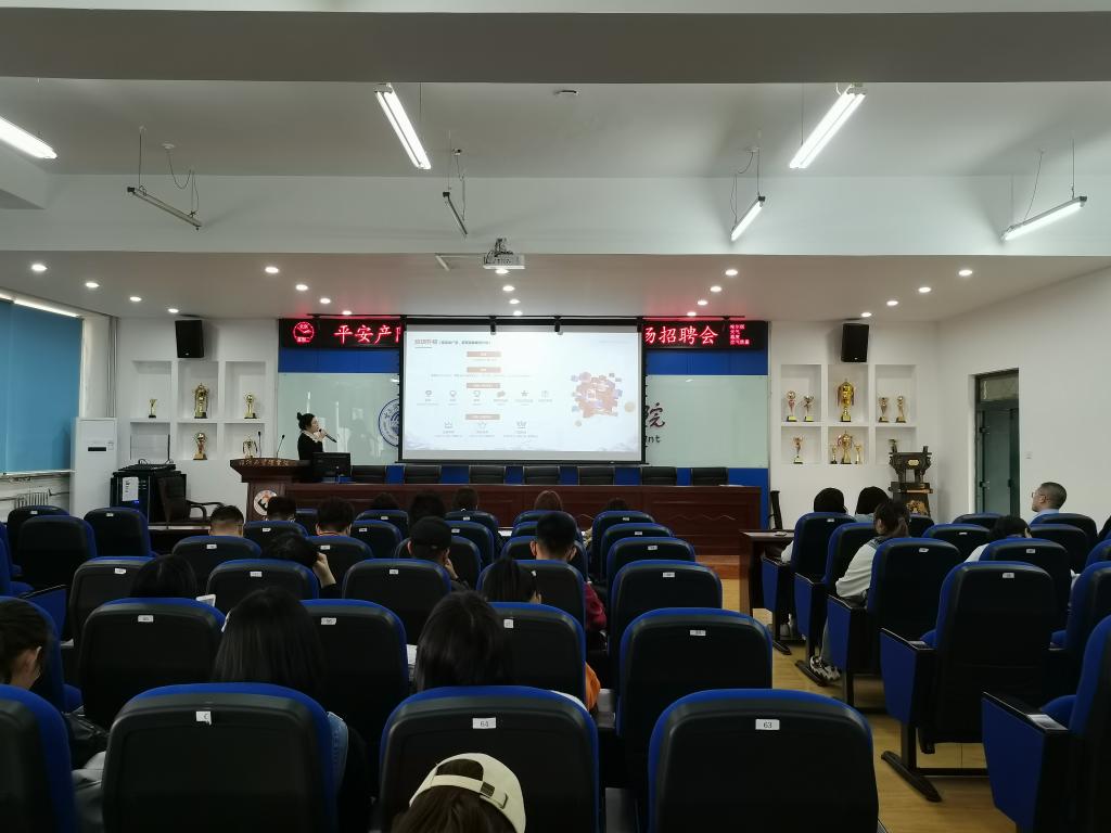 本次招聘会上,首先平安产险的人力资源部张海峰经理向在场学生播放了公司的宣传介绍视频,其次,张经理通过PPT展示向在场的同学们详细的介绍了平安产险的公司概况、业务范围、招聘岗位、福利待遇等等。中国平安保险(集团)股份有限公司于1988年诞生于深圳蛇口,在各级政府及监管部门、广大客户和社会各界的支持下,成长为我国三大综合金融集团之一。 截至目前,平安产险开发、经营的主险已超过1000种,经营业务范围涵盖车险、企财险、工程险、责任险、货运险、农业保险、短期健康险与意外险等一切法定产险业务及国际再保险业务。平安产险1992年进驻黑龙江,经过近30年的发展,已在黑龙江省内13个地市及所辖县域设立分支机构。多年来,平安产险黑龙江分公司围绕客户服务需求,致力于服务科技创新,将AI人工智能应用于客户服务流程的各个触点,打造“安心·简单·温暖”的品牌定位和服务形象,贯彻“以人民为中心”的服务宗旨,不断践行企业社会公民责任,通过提供丰富的保险保障与优质的金融服务为龙江的经济建设、百姓的安居乐业保驾护航。