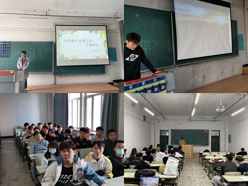 理学院通过召开心理健康主题会议的形式开展了主题班会。在主题会议上,通过普及心理健康基本知识、树立心理健康意识、了解心理健康调节方法、认识心理异常现象、掌握心理保健常识,引导学生讲述自己心中的烦恼,阐述面对心理问题的看法。