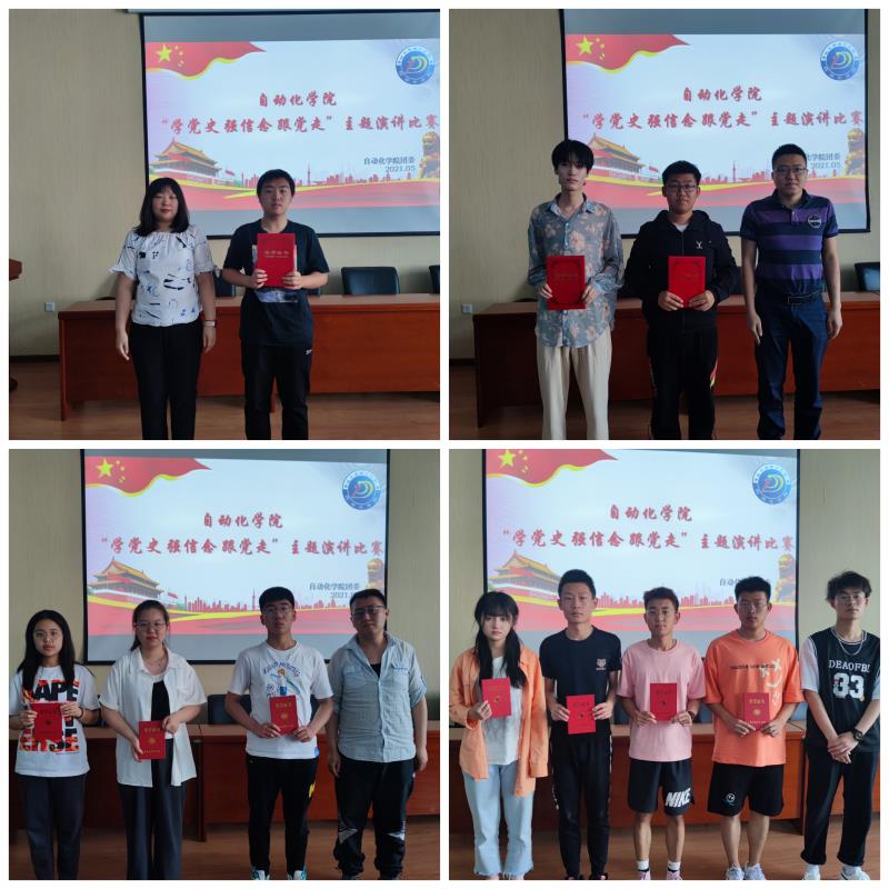 倾听党史百年风雨历程,传播奋进向上青年之声。为迎接中国共产党百年华诞,深入推进“学党史、强信念、跟党走”主题学习教育,自动化学院于2021年5月20日在新主楼E1404举办“学党史、强信念、跟党走”主题学习教育演讲比赛。自动化学院团委书记黄林萱、自动化学院学生会指导老师付宇、自动化学院辅导员张戈、以及自动化学院团学组织学生干部作为评委出席此次演讲比赛。