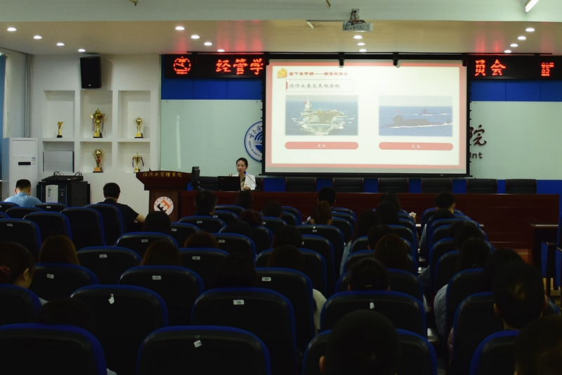刘畅老师以《发展海军大国重器赓续两弹一星精神》为题,从核潜艇简介、我国核潜艇的发展之路、国之重器--我国正逐步成为海上强国、精神赓续--实现中华民族伟大复兴等四个方面为师生讲述了我国核潜艇发展的艰辛历程以及“两弹一星”精神,为师生们上了一堂精彩的党史学习教育课。报告内容丰富,视野开阔,立意新颖,数据详实,展示了以彭士禄为代表的老一辈科学家们以身许国、忠诚担当、淡泊名利、敬业奉献的爱国情怀和高尚品格,进一步强化了师生对中国共产党光辉历程的学习掌握和对老一辈科学家们的崇敬之情。