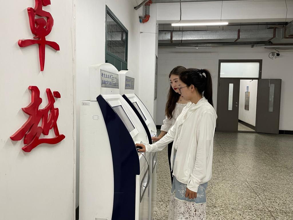 升级后的两台研究生自主打印机器位于新主楼13楼,每天都有学生前来打印。