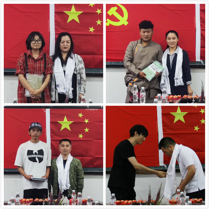 在认亲结对仪式上,罗来珍领学了习近平总书记关于民族团结的重要论述和在党史学习教育动员大会上的重要讲话精神。少数民族学生专职辅导员刘培垟介绍了学校少数民族学生的基本情况和特点。参与结对学生逐一介绍了自己的学习、生活、家庭情况,并对学校的亲切关怀和老师的真情帮助表示感谢。通信20-1班白央作为学生代表作表态发言,她表示一定会努力学习专业知识,不辜负学校和老师们一直以来对少数民族学生的关心与支持,并立志毕业后要回到边疆建设美丽家乡。16位教师与16名来自西藏地区的少数民族学生认亲结对,老师为结对学生赠送学习资料,并给学生佩戴上五彩绳和香荷包,结对学生为老师献上哈达,结对现场充满温情,师生进行了亲切的交流。