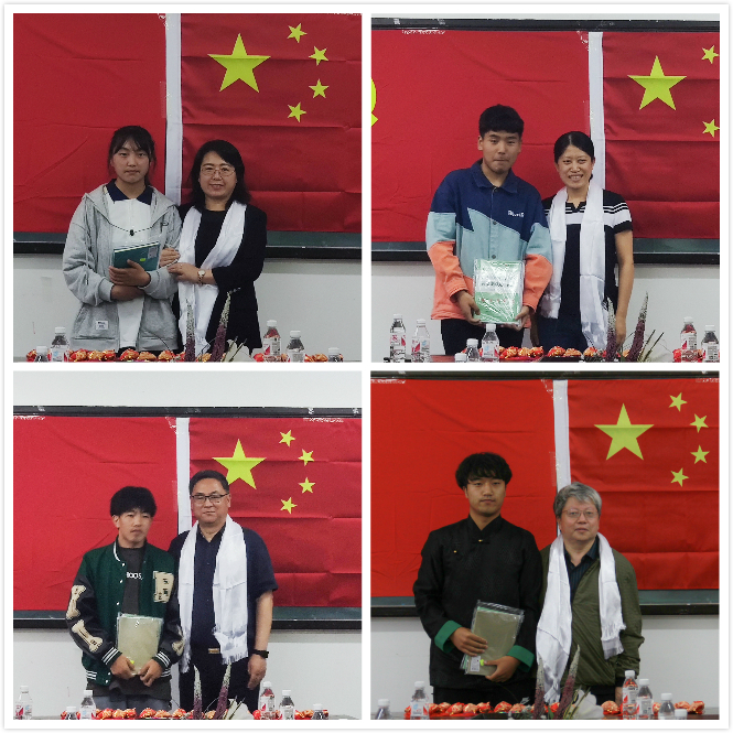 左明霞、吕月明、赵辉、王树忠老师与学生认亲结对