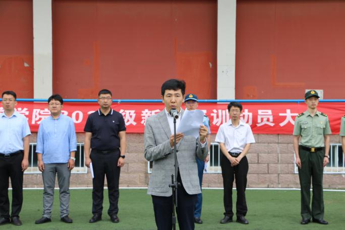 赵运平副书记代表学院讲话。他指出,哈理工是黑龙江省人民政府与国家国防科技工业局共建高校,也曾是中国人民解放军火箭军联合培养国防生院校,积极贡献科技军民融合领域,有较为鲜明国防特色,国防教育融于大学生思政工作,用“红色基因”赓续“红色血脉”,忠诚品格是理工文化的精神内核之一。军训既是一次思想洗礼,涵养血性、锻造铮铮铁骨,增强国防观念和国家安全意识,进行爱国主义教育;军训也是习得养成,帮助大学生形成规矩、自律自强,进行集体主义教育。为确保高质量完成本次军训任务,提出三点要求:一是认真训练,切实提高军事技能,针对青年学生身心特点,讲究方式方法,控制训练强度,做到科学组训、灵活施训、文明施训;二是严明纪律,全体学生要严格遵守学校的各种规章制度和军训要求;三是把学习军人严明的纪律,过硬的作风,和自觉地遵守学校的一切规章制度结合起来,为大学生活奠定坚实基础。军训是苦的,但收获是甜的,军训将提升大学生的逆境商,必将成为大学生活的难忘经历。