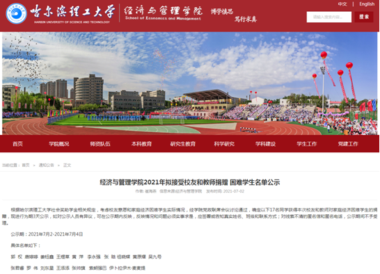 为了助力经济与管理学院家庭经济困难学生勤奋学习,健康成长,经济与管理学院日前设立“沐风助学金”,旨在用于奖励、资助学院本、硕、博学子中家境贫寒、品学兼优的在校学生,激励他们不畏暂时困难,自强不息、拼搏进取,追求卓越、全面发展。十年树木,百年树人。沐,有润泽、培育的含义。风,指经历风浪的人,即这些心怀梦想、坚韧不拔的寒门学子。“沐风”二字合起来寓意就是让困难学生得到资助,使他们更加顽强成长成才。