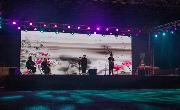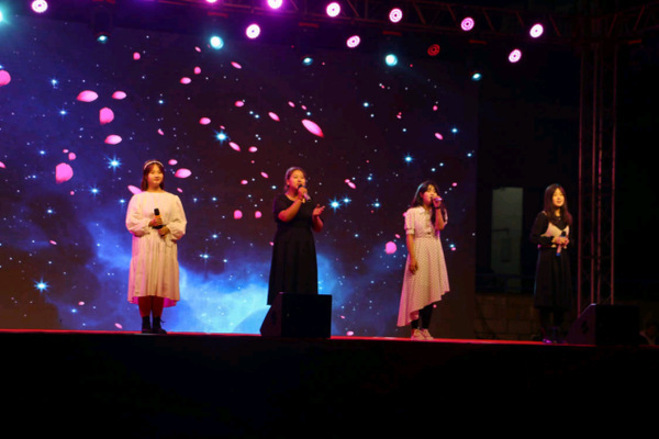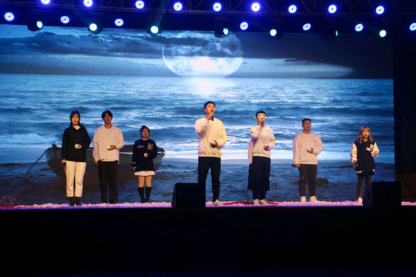 在阵阵锣鼓声中,4只霸气红色祥狮,跟随鼓点的节奏,高视阔步,欢快跳跃,拉开了晚会第一篇章——“与君相逢,何出千幸”的帷幕。三首洋溢着青春气息的歌曲活跃了现场的气氛。轻快的音调、熟悉的旋律在耳畔响起,令人不禁轻声哼唱,为晚会增添了几分活泼俏皮。一段舞蹈《非日常狂欢》优美的舞姿吸引了现场观众的目光,引发现场热烈掌声。在**瞩目中,海岸线乐队和民乐团先后登场,他们以不同的表现形式,分别将《无人的海边》与《青花瓷》等曲目呈现在舞台上,勾起了同学们的青葱记忆。