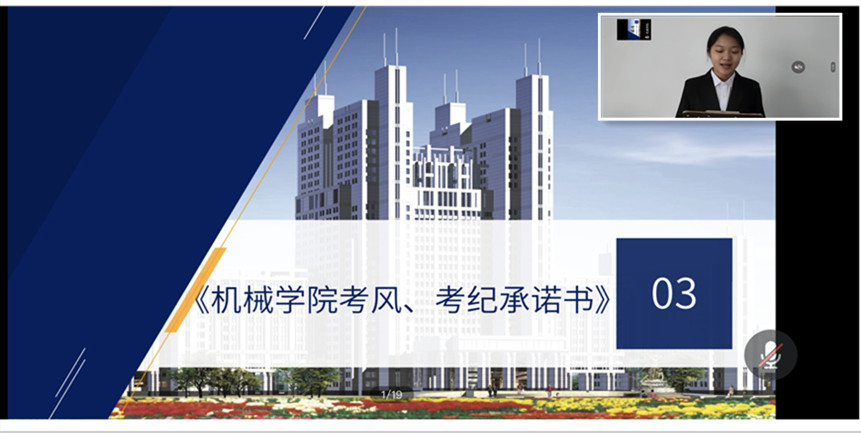 最后,学院21-3班团支部书记陶佳雨代表学院全体同学宣读了《机械学院考风考纪承诺书》。