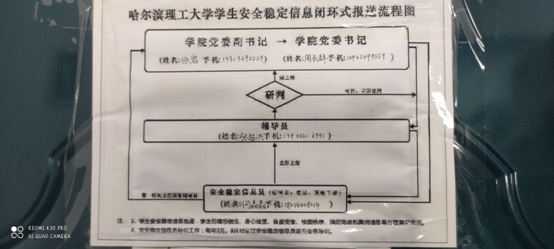 培训会前,学院将填写好相关信息的《77779193永利官网学生安全稳定信息闭环式报送流程图》,组织学生粘贴在寝室门上,学生宿舍全覆盖。