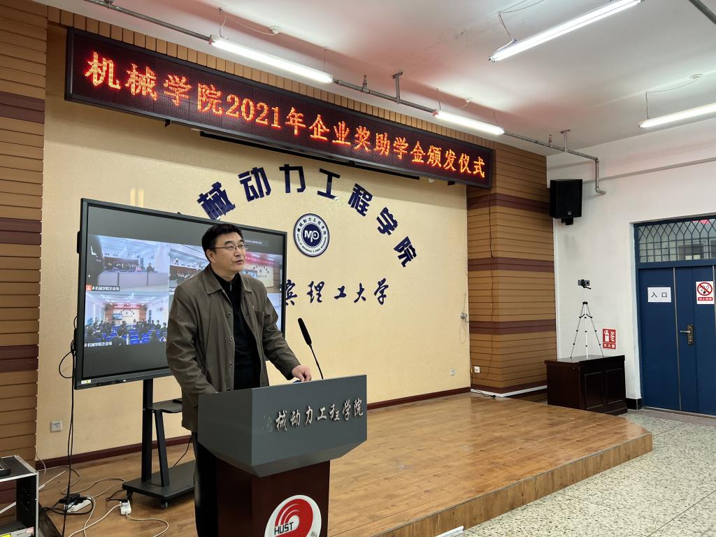 机械学院党委书记姜彬在致辞中向国宏工具系统(无锡)股份有限公司和宜讯汽车(上海)装备公司的校友关心关注教育事业、助力学生成长成才致以诚挚的谢意。表示每一项奖助学金都是企业和校友关心我院人才培养的善举,将镌刻在机械学子心中,升华为巨大的精神动力,成为他们今后工作、生活中源源不断的力量,这也是激励全院教师不忘立德树人之初心,与企业、校友携手并肩,为永利官网人才培养质量、“双一流”建设和我国装备制造业的发展,再创新辉煌。同时也祝福企业兴旺发达。