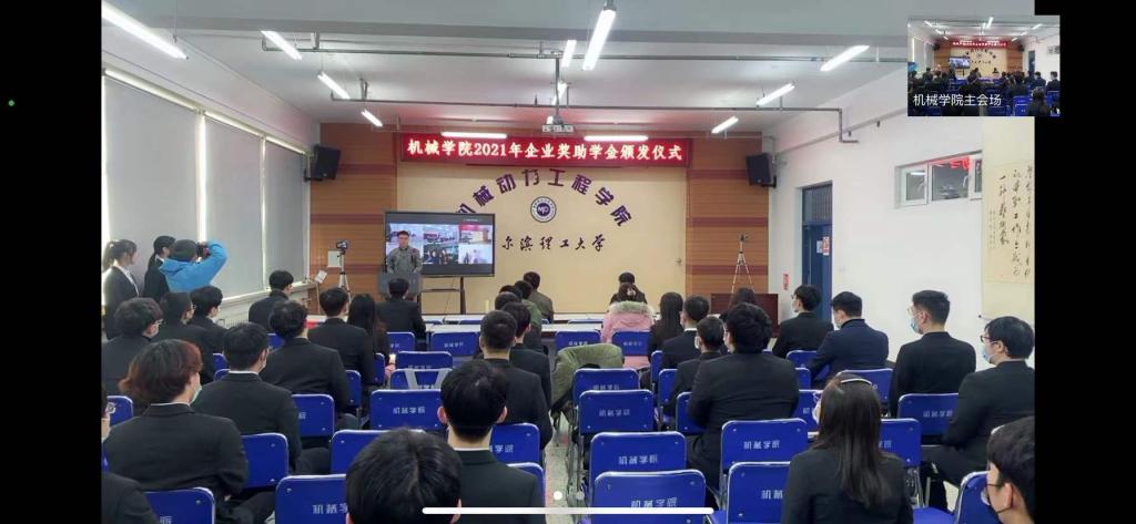 2021年12月21日下午,机械学院于新主楼C305及腾讯会议分会场,以线上线下相结合、多机位直播的形式举办了“2021年度机械学院国宏工具奖助学金、宜讯装备雏鹰奖助学金颁发仪式”。国宏工具系统(无锡)股份有限公司总经理吕显豹、人力资源部主管穆娜、涂层技术部经理于忠光,上海宜讯汽车装备有限公司总经理、上海校友会常务副会长李宝明于线上出席颁发仪式,机械学院党委书记姜彬党委副书记杨芳及学院学生工作队伍与获奖学生代表共同参加仪式,颁奖仪式由机械学院辅导员陆翔主持。