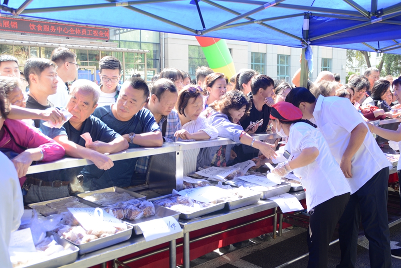 一是9月10日中午12时,在西区一食堂门前,后勤管理处饮食服务中心举办了“教师节食品展销”。饮食服务中心西南区三个食堂大厨们纷纷拿出看家厨艺,精心烹饪,110多道新奇的菜肴齐刷刷上阵,有香酥鲫鱼、盐水肝、清蒸狮子头、千层猪耳、蛋挞、榴莲酥等。为师生们奉上色香味俱全的美食盛宴,吸引了众多师生前来选购,体现出了饮食服务中心的饮食文化和服务惠师理念。