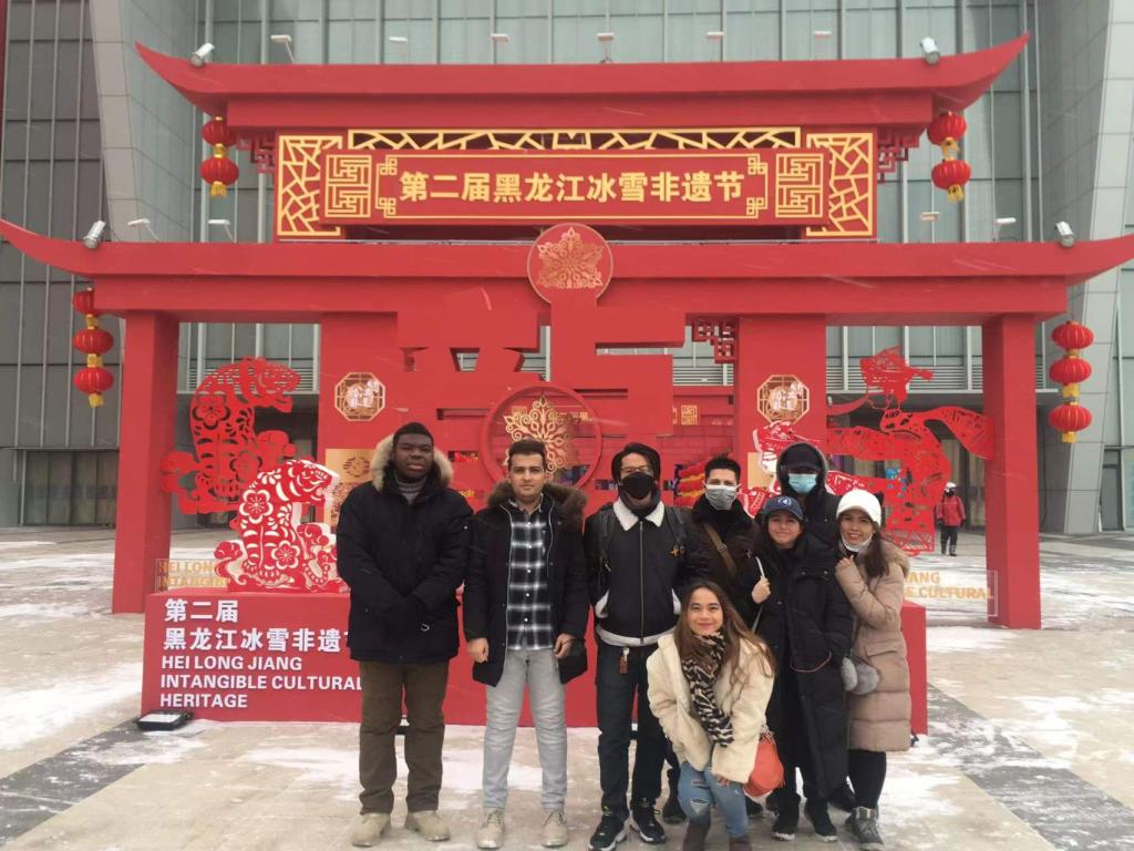 为丰富寒假生活,1月15日,外国语学院组织留学生们参观了第二届龙江冰雪非遗节,与中国民间艺人一同体验了剪纸、焗瓷和中医,品尝本地曲子酒、熏鳇鱼,观看了望奎皮影戏和二人转,借民俗展示,走进中国文化。