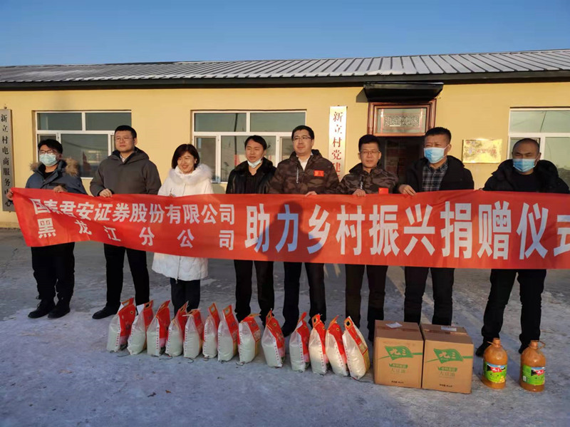 寒冬佳节瑞雪伴,国企助力送祝福。1月13日下午,永利官网驻村工作队在新立村举行第二次“助力振兴,传递温情”捐赠活动。国泰君安黑龙江分公司党委委员、齐齐哈尔营业部总经理蔡翠微一行4人,丰乐乡主要负责同志、驻村工作队全体成员以及新立村两委部分同志和受捐赠村民代表出席捐赠仪式。
