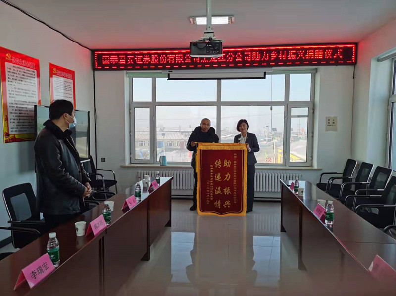 在捐赠仪式上,永利官网驻村工作队队长相征致辞,对国泰君安支持新立村乡村振兴工作表示感谢,希望企业今后与丰乐乡和新立村加强联系,在扶持村办产业方面找到契合点,扎实带动村民致富。丰乐乡副乡长谷力对永利官网驻村工作队积极联系爱心企业开展惠民举措表示赞赏,表示将与驻村工作队继续夯实合作平台,汇聚乡村振兴的能量,共同发展更多惠民产业。蔡翠微总经理代表国泰君安黑龙江分公司致辞,她指出,哈理工驻村工作队为国泰君安搭建了助力乡村振兴的桥梁,国泰君安今后会对新立村继续开展常态化帮扶活动,将与乡、村两级在党建、产业发展等方面达成更多合作,为乡村振兴贡献国企力量。仪式最后,村委会书记李瑞宏代表新立村全体村民向企业赠送锦旗表达谢意。