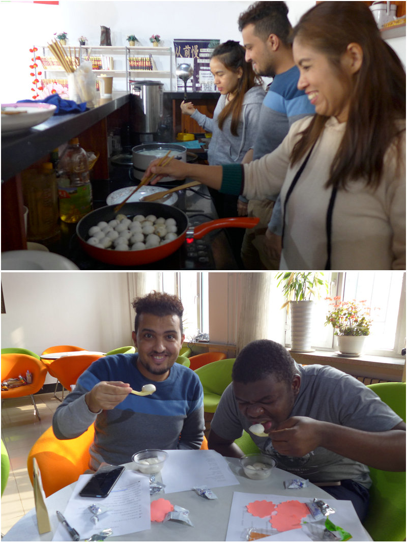 为了让留学生对元宵节有更深的认识,对外汉语系张明明老师15日又为留学生讲授了一节元宵节民俗课,通过元宵节的传统故事,让学生了解相关的历史背景和文化渊源,感受传统文化的魅力。在一阵阵欢声笑语中,一碗碗热气腾腾的元宵端上桌来,师生们品尝着香甜可口的传统美食,尽享元宵喜乐。