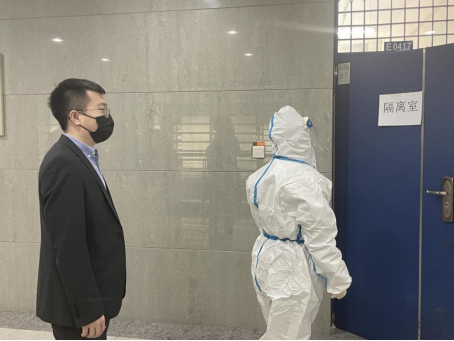 校医院医生将疑似症状教职工带到隔离室,并进行初诊研判
