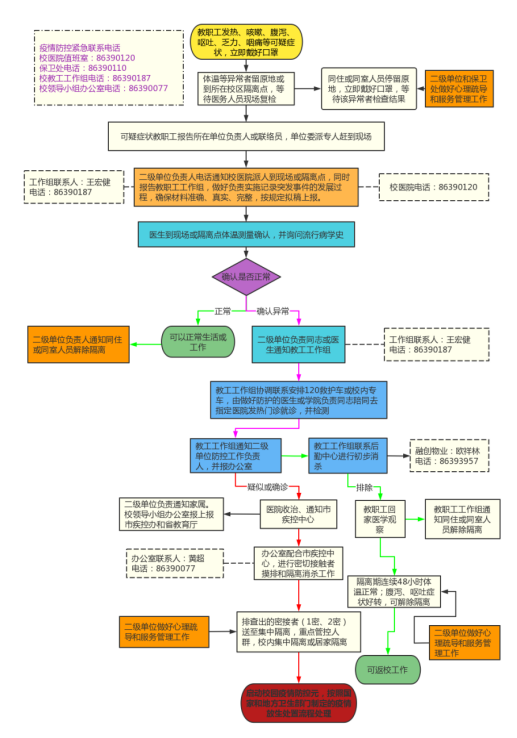 77779193永利官网教职工发热等疑似症状应急处置流程图