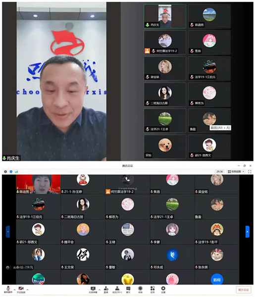 为进一步贯彻落实校第四次党代会精神,在学生中掀起学习的热潮,马克思主义学院结合“开学第一课”,于3月18日晚18:30采取腾讯会议的形式,邀请了马克思主义学院党委书记肖庆生为学生作校第四次党代会精神解读。马克思主义学院党委副书记陈迪男主持会议,副处级辅导员刘祥蓉及马院全体学生参加了会议。