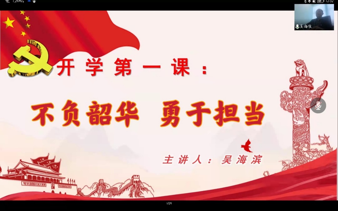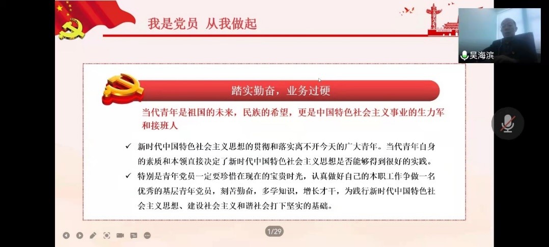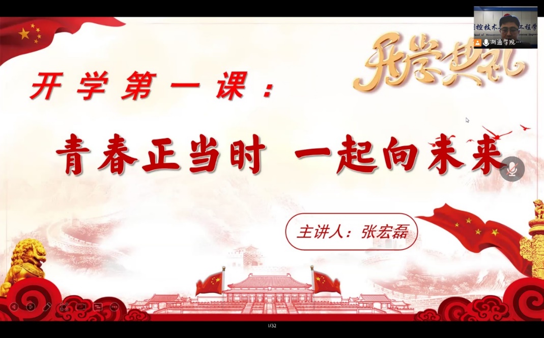 3月21日12:30,测通学院组织全院学生干部及学生党员先锋代表召开2022春季学期《开学第一课》。测通学院党委书记兼院长吴海滨、测通学院党委副书记张宏磊出席会议并授课,测通学院辅导员侯梦雪主持,课程采取线上形式进行。