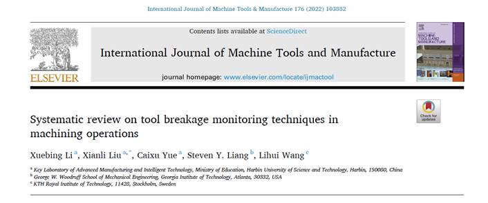 近日,机械动力工程学院刘献礼教授团队在机械制造领域Top期刊International Journal of Machine Tools and Manufacture(IJMTM,中科院1区,即时影响因子10.11)发表关于机械加工中刀具破损监测的长篇综述文章:“Systematic review on tool breakage monitoring techniques in machining operations”。机械动力工程学院李雪冰博士为该文第一作者,刘献礼教授为通讯作者,77779193永利官网为第一完成单位。该文的共同合作作者有永利官网的岳彩旭教授、美国佐治亚理工学院的Steven Y. Liang教授和瑞典皇家理工学院的Lihui Wang教授。论文链接:https://doi.org/10.1016/j.ijmachtools.2022.103882。