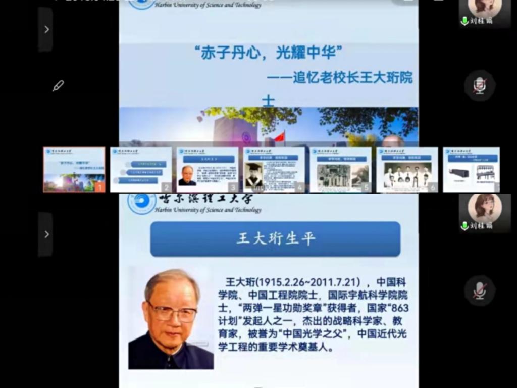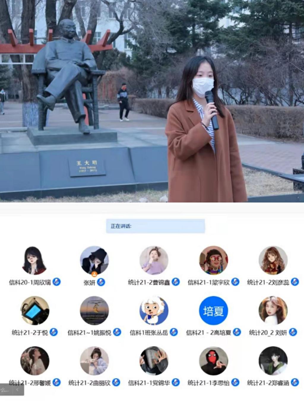 打卡红色地标。活动伊始,主持人带领同学们线上瞻仰了王大珩铜像和大珩先生题词浮雕字,同时介绍了王大珩铜像落成的历史意义。接下来,理学院团委书记、青年志愿者协会指导教师刘桂娟从家庭影响与学生时代、王大珩校长对社会的贡献、大珩校长与哈理工的不解情缘、弘扬大珩精神,做新时代哈理工人四个部分生动讲述了王大珩先生一生的光荣史、奋斗史和献身精神,通过对大珩精神的宣讲进一步劝勉同学们要去做有大智慧、大抱负、大气魄的有志青年,要爱国,立志,求真,力行,传承大珩校长的精神,为实现中国梦和强校梦贡献青春智慧和力量。
