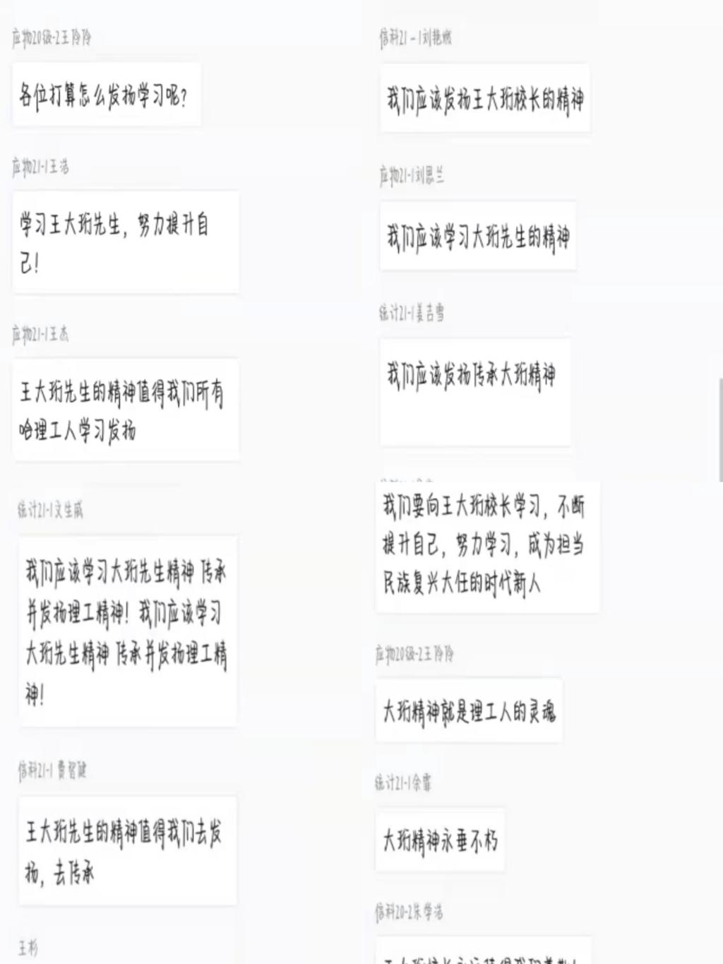 活动中,理学院百名学子反响热烈并纷纷在微信公众号评论区表达自己对王大珩先生的敬仰之情,为更好地继承和发扬大珩精神打下了良好的基础。