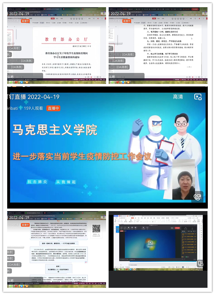 为全面贯彻落实省、市关于新冠肺炎疫情防控最新决策部署,筑牢永利官网疫情防控安全屏障,4月19日19时,马克思主义学院通过钉钉线上会议形式召开学生疫情防控大会,马克思主义学院全体学生参加会议。本次会议由尹淼老师主持,学院党委副书记陈迪男老师、副处级辅导员刘祥蓉老师参加了会议。