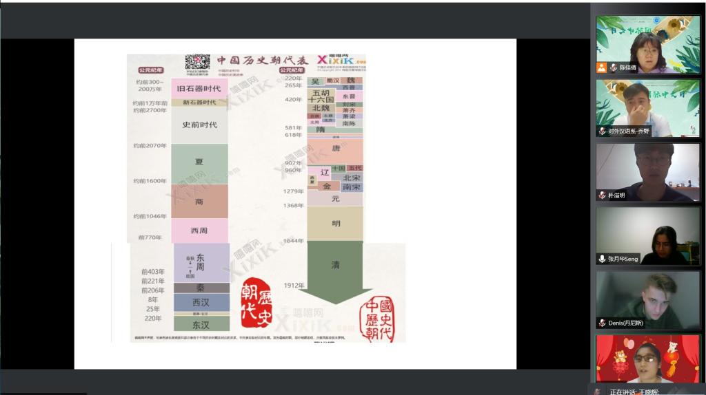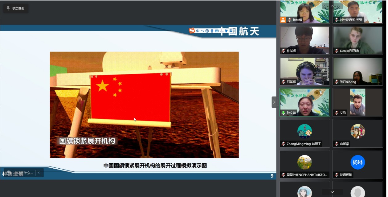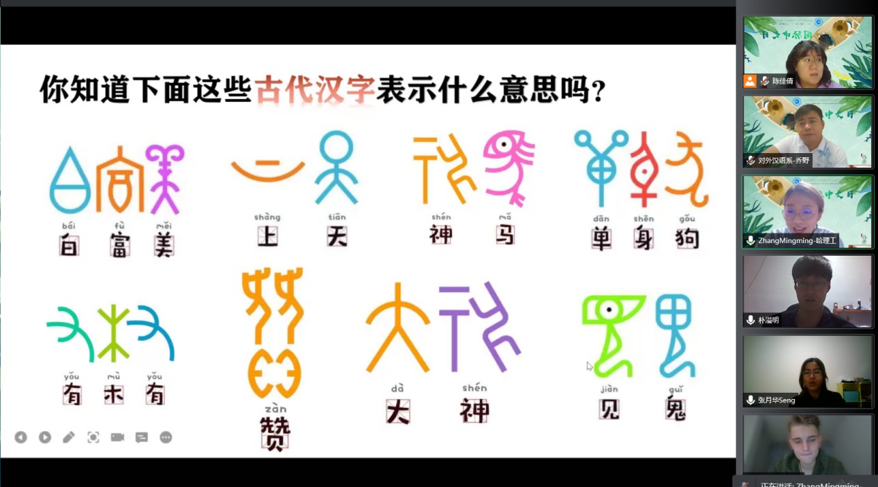 张明明老师从“国际中文日”引出谷雨节气介绍、仓颉造字,王晓辉老师、孙文婧老师、曲溪濛老师分别从文学、科技、旅游等方面介绍了中国,让留学生们了解中国的汉字演变、文化传承、科技创新和经济发展。