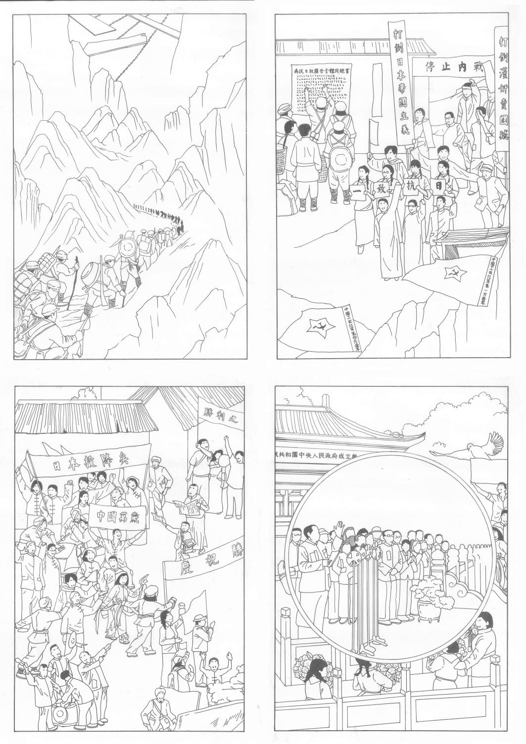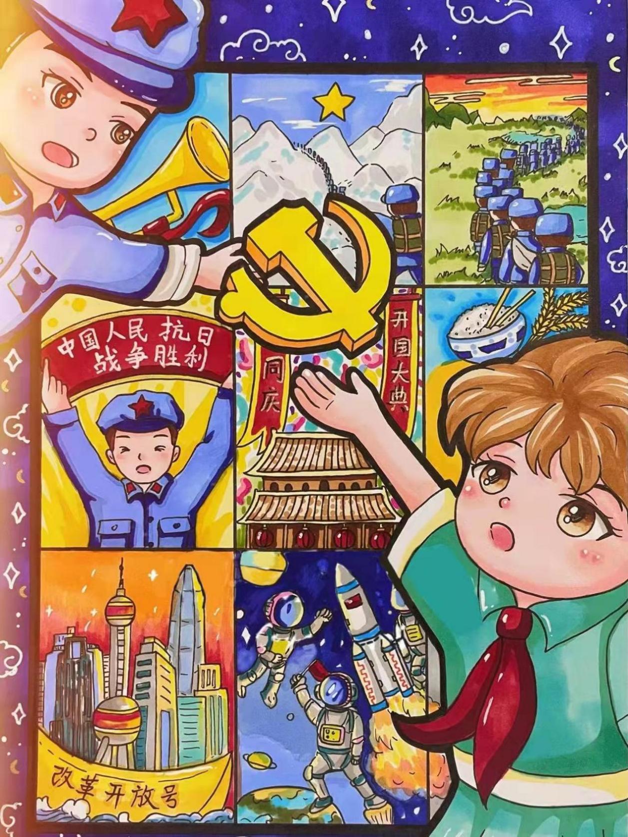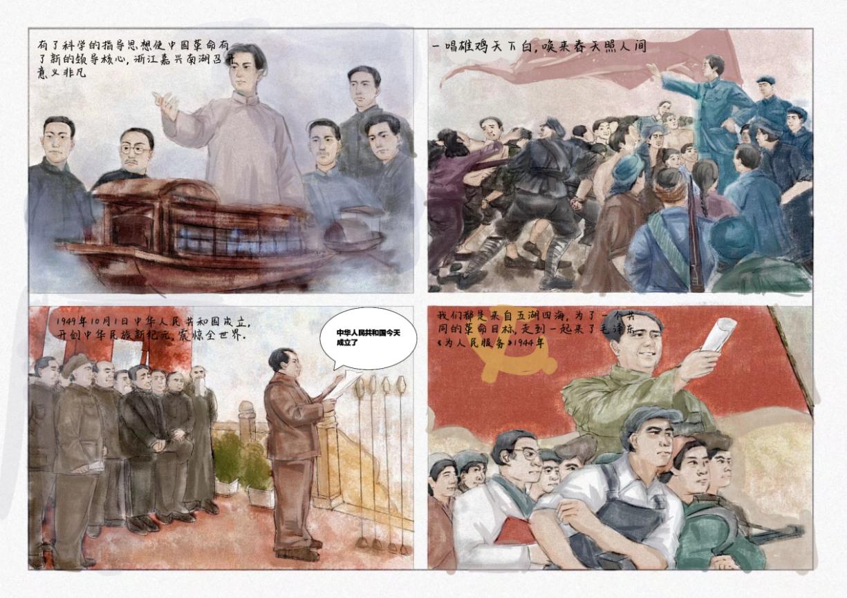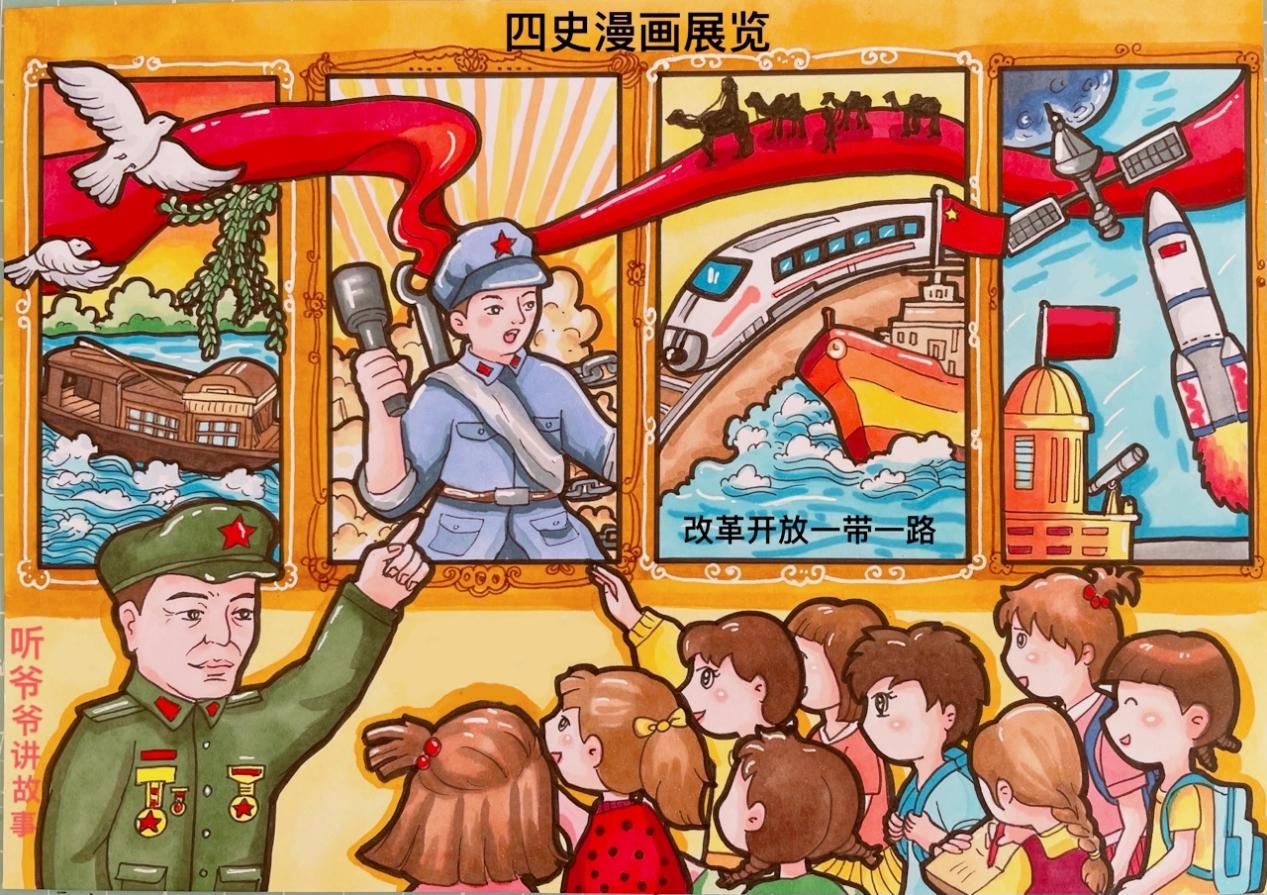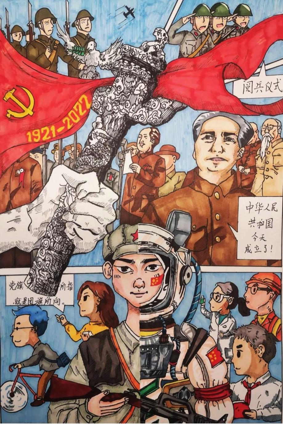 经过组委会专业老师的层层把关,共计47组手绘漫画作品脱颖而出。其中,薛忠蕊的作品《百年喜庆》,穆佳敏的作品《黑白历史》,苍涵的作品《穿越百年》,杨博华和衣婷玉的作品《纪念长征》脱颖而出荣获一等奖。