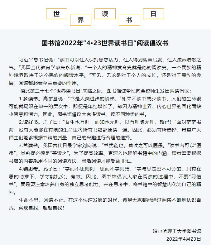 系列活动(二):向全校师生发出的“阅读倡议书”