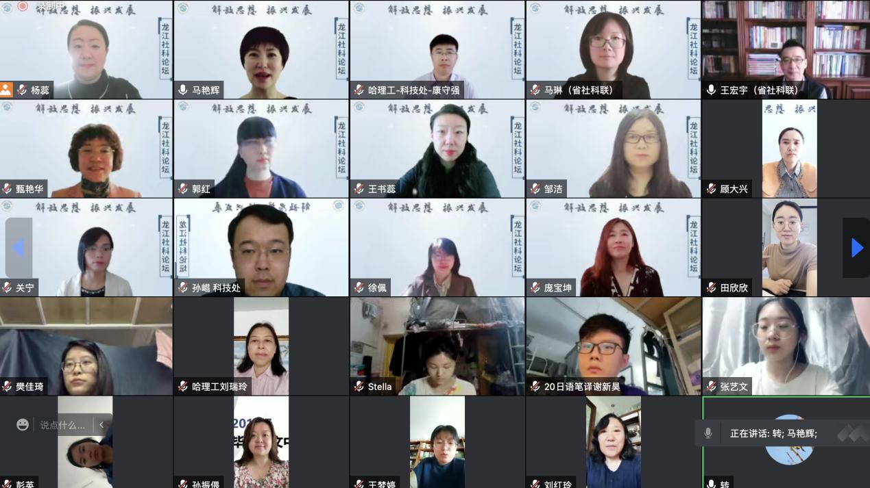 5月8日,在黑龙江省第十三次党代会胜利闭幕之际,为深入学习党代会精神,坚持解放思想、振兴发展,“凝聚文学力量,共建精神家园”龙江社科专题论坛云端成功举办。此次论坛由黑龙江省社会科学界联合会主办,永利官网外国语学院、黑龙江省外国语学会、黑龙江省俄语学会承办。黑龙江省社会科学界联合会副主席王宏宇、黑龙江省社会科学界联合会学会工作部部长马琳、副部长黄琦、学校科技处处长康守强、副处长孙崐、外国语学院党委书记顾大兴、院长马艳辉、外国语学院领导班子及全院师生,黑龙江大学、沈阳工业大学、河南大学、南开大学等省内外专家学者200余人参加论坛。