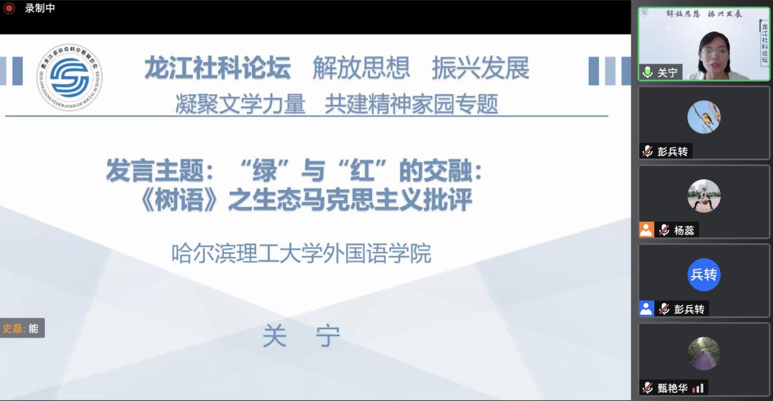 永利官网外国语学院承办的“凝聚文学力量,共建精神家园”专题论坛为省社科联连续推出的11场龙江社科系列论坛之一,旨在发挥龙江社会科学积极作用,营造热议省第十三次党代会浓厚氛围。系列论坛以“解放思想 振兴发展”为主线,聚焦党代会提出的重大理论与现实问题,发挥学会、学科、学术、学者优势,组织社会科学工作者研讨交流、建言献策,团结带领全省社会科学界以思想大解放推动龙江高质量发展。论坛由省社科联主办,黑龙江大学哲学学院、哈尔滨师范大学马克思主义学院、黑龙江省冰雪产业研究院等有关高等院校、社会组织、学术交流基地等承办。