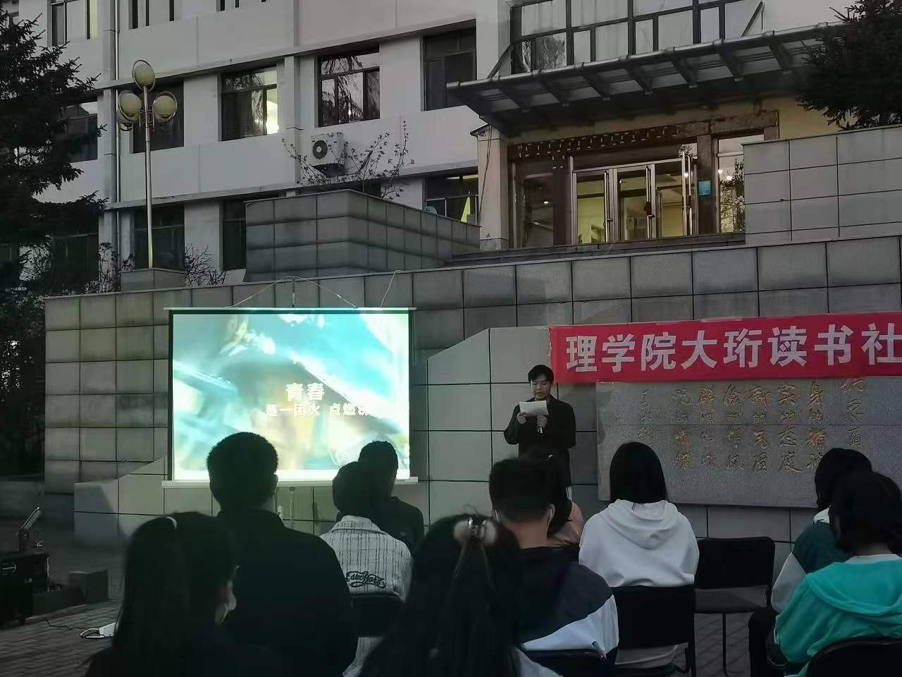 自我院开展“无运动•不青春”77779193永利官网体育文化月系列活动以来,学院领导积极部署,学工人员精心策划,学生干部周密组织,开展了两场具有学院特色,广大学生喜闻乐见的文体活动。活动覆盖面广,趣味性强,内容丰富,寓教于乐。时值活动尾声,我院本着“运动使人充满生机活力,思考使人充满智慧理性”的教育引导理念,于5月18日下午在理学院大珩先生铜像前,举办由理学院大珩读书社发起的以“青春正当时”为主题的体育活动月总结交流活动,激发学生对“寄望青春,奋斗青春”的思考。