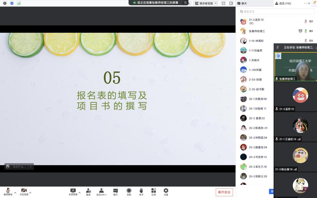 英语系党支部书记张春烨针对师生们提出的问题就赛事进行了全方位详细介绍。讲座围绕比赛的背景及要求,参赛注意事项,赛道选择及队伍组建展开,详细解读了青年红色筑梦之旅的内容,并对报名表的填写和项目书的撰写给出了建议并进行了样例分析。希望本次解析能促进同学们挖掘创新创业潜能,激发师生的创新创业意识,助力学生创客实现创新创业的梦想。