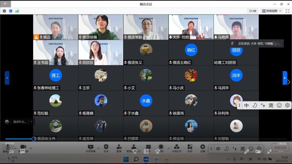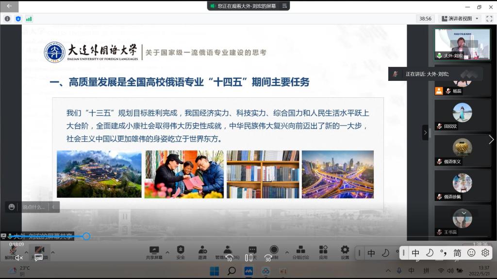 5月21日,大连外国大学校长、教育部高等学校外国语言文学类专业教学指导委员会副主任委员刘宏教授面向外国语学院教师进行了关于“一流俄语专业建设的思考”线上讲座。外国语学院院长马艳辉,副院长杨蕊、王书蕊,外国语学院俄语专业教师及各专业主任、书记等出席讲座。