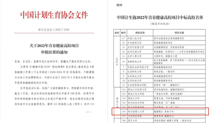 据悉,全国共有500余所学校申报“2022青春健康高校项目”,经过严格的审核筛选,最终有311所高校项目中标,其中由中国计生协提供项目经费的A类项目155个,永利官网申报的“健康随行青春不朽”项目成为155个全国经费项目之一。