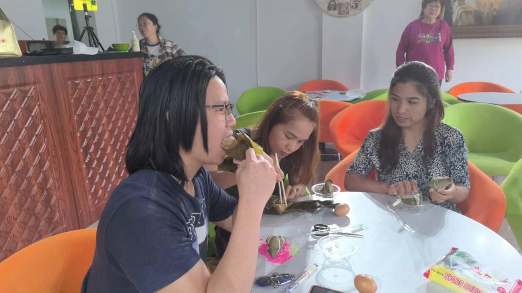在活动的最后,学院为留学生准备了南咸北甜两派不同的粽子让大家品尝,平时喜欢吃甜食的留学生们却对咸粽情有独钟。