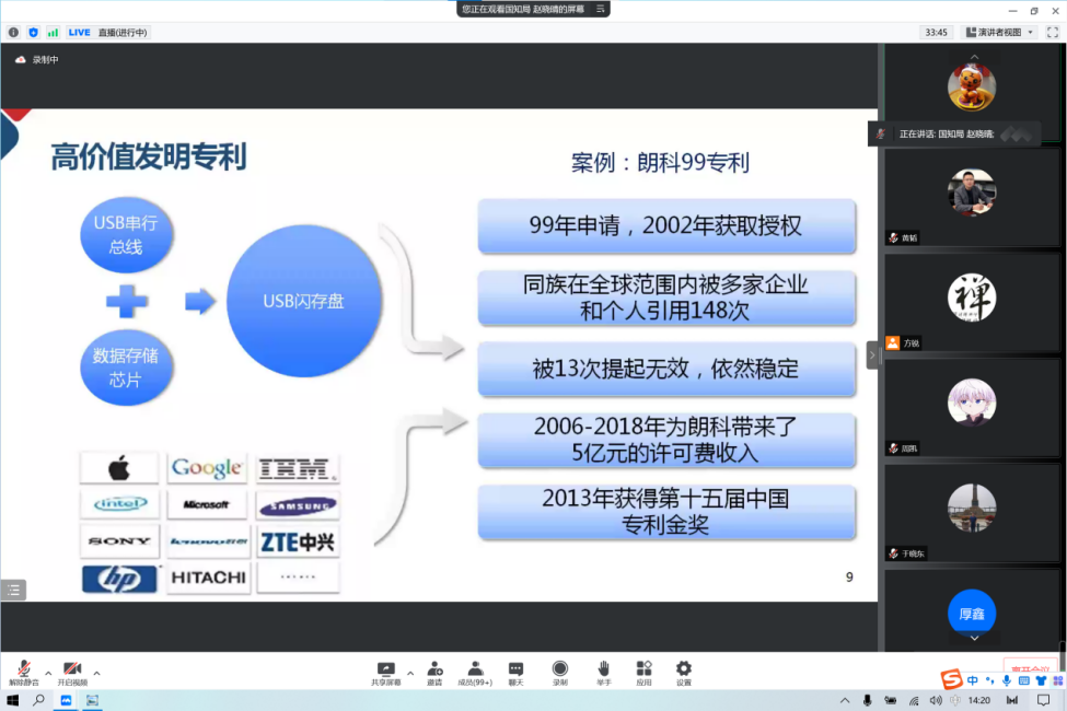 会上,赵晓晴对高价值专利培育、专利布局模式和操作流程、专利挖掘方法、专利运营模式四个方面进行了详细的讲解。赵晓晴老师从理论和实践两个方面分享了多年的知识产权工作经验,重点对高校专利运营模式进行了分析,指出高校通过有效挖掘专利并实施布局,合理利用各种专利运营模式,可以极大地规避知识产权风险,提升知识产权和成果转化核心竞争力。
