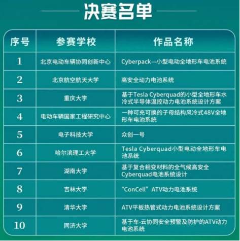 挑战赛决赛分为现场答辩和系统测试两个环节。其中现场答辩由10名评审委员会专家针对参赛设计方案的完整性、创新性、可行性、产业化应用、现场答辩逻辑性及回答问题准确性等角度进行评价;系统测试环节由19名裁判委员会专家从电池系统参数测量、充放电测试、最高功率放电测试、雨淋测试、跌落测试、底部球击测试和耐温测试等7项测试项目进行评价。