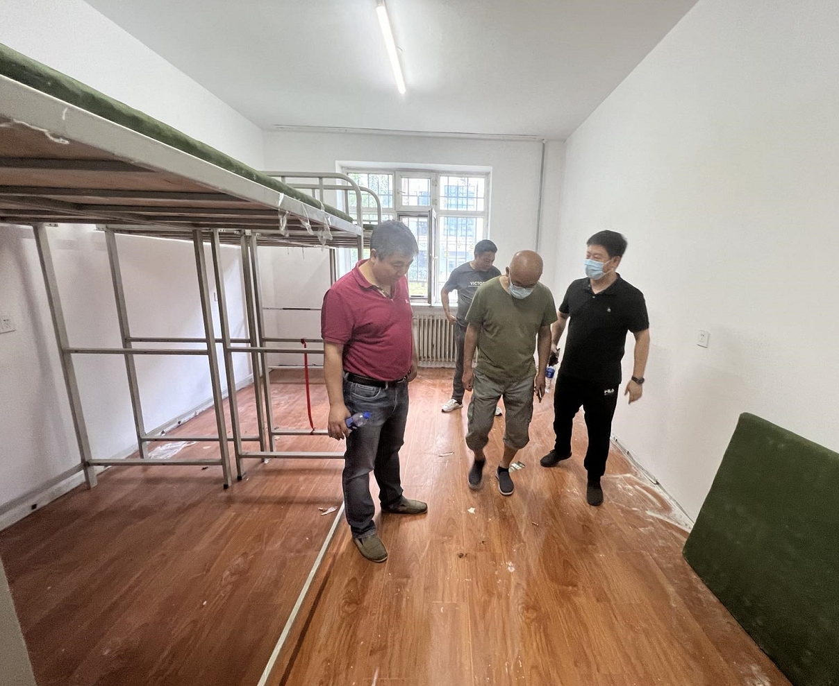 杨忠学带队分别来到永利官网东、南、西三个校区的维修改造工地,对楼宇防水、供暖和供水管线改造、外墙保温、窗户更换、公共教室和毕业生寝室房间维修粉刷、卫生间维修改造、部分道路和步道板维修、学生宿舍更换地板等各施工现场进行实地察看。杨忠学现场检查了工程质量、施工材料和安全管理措施,听取了后勤管理服务中心的工作汇报,了解了各项目施工进展情况,并就解决施工的困难和问题、提升项目工程质量等提出了指导意见,要求监理方、施工方确保施工质量和人员安全,保证按时完工。